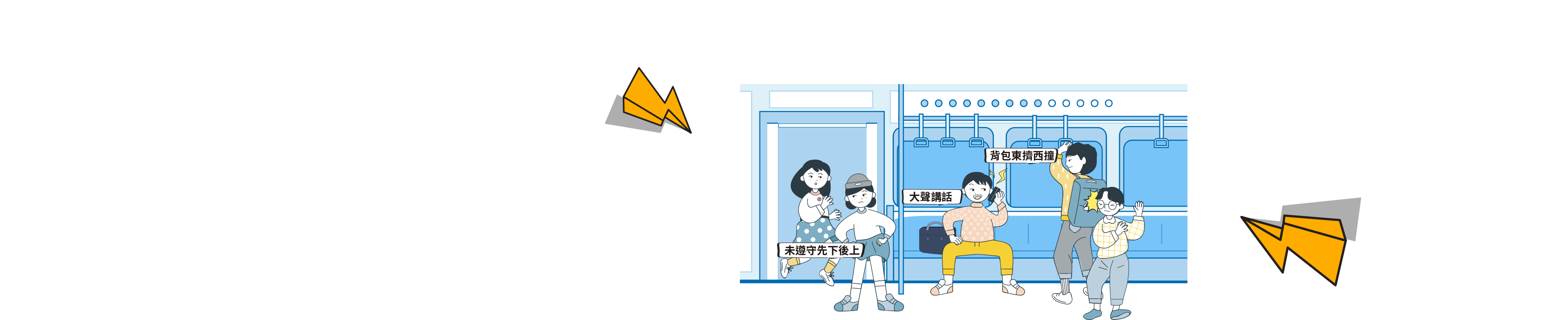 - 在捷運上不戴口罩打噴涕,在捷運上吃食物,在捷運上拉吊環運動..
