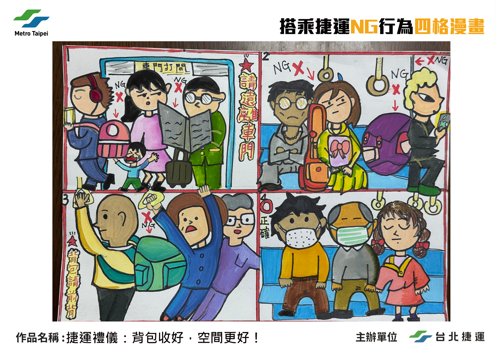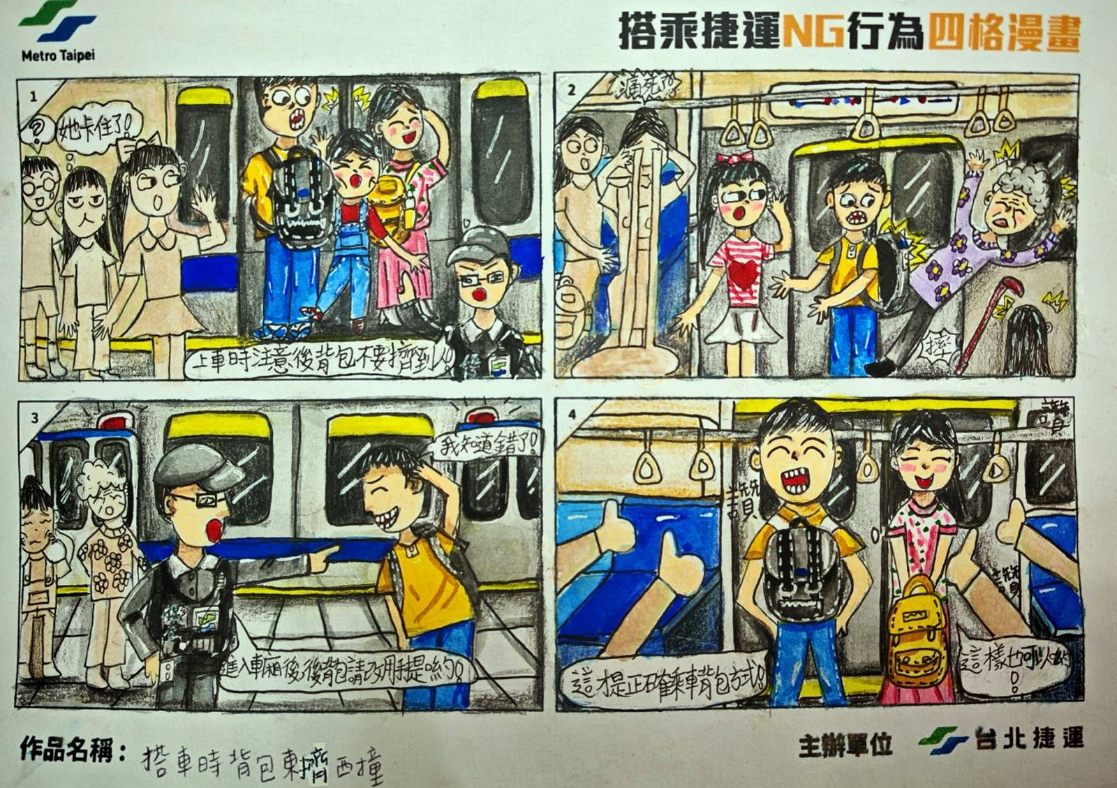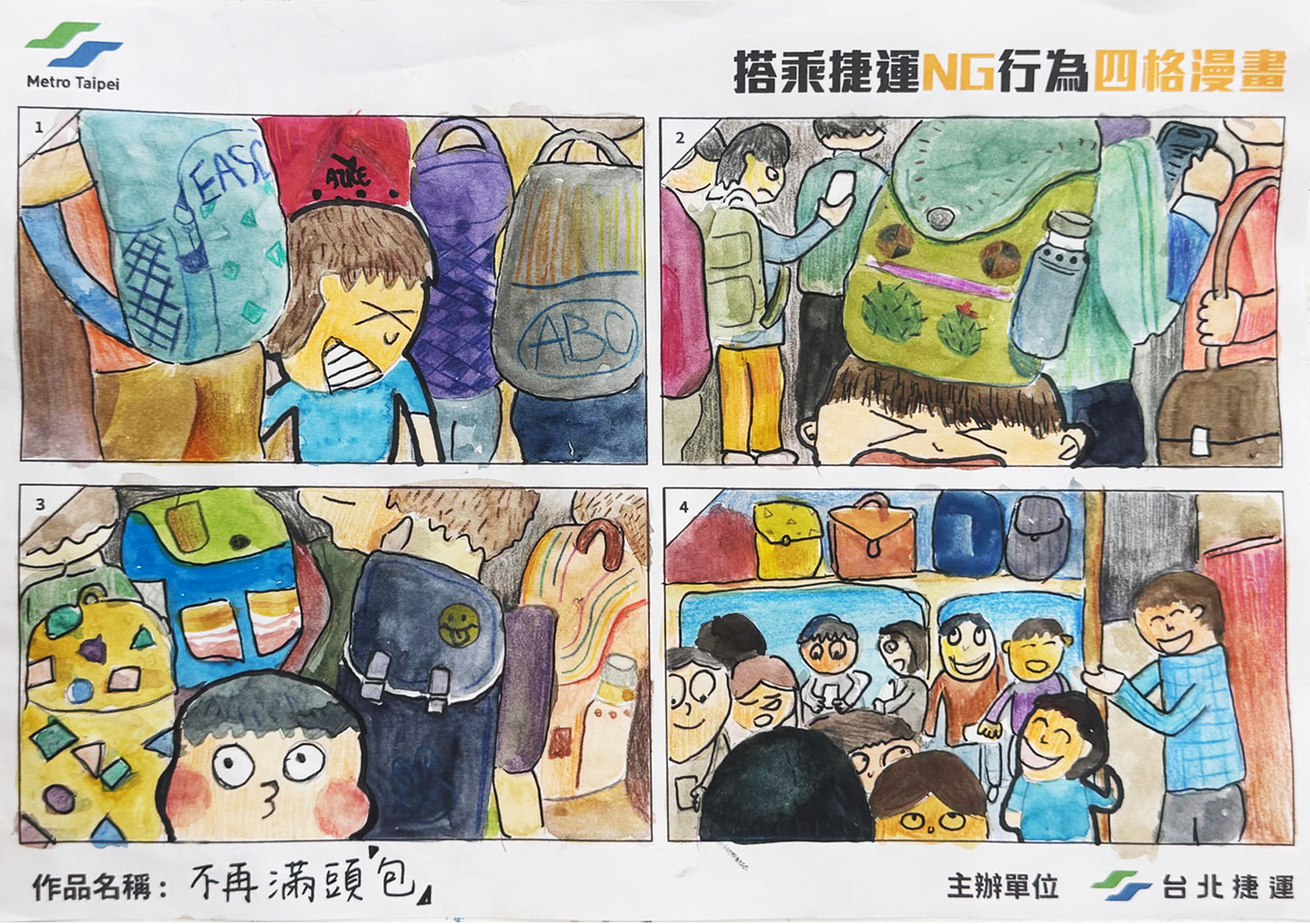 - 我通過搭車時背包東擠西歪的漫畫主題,描繪出捷運..