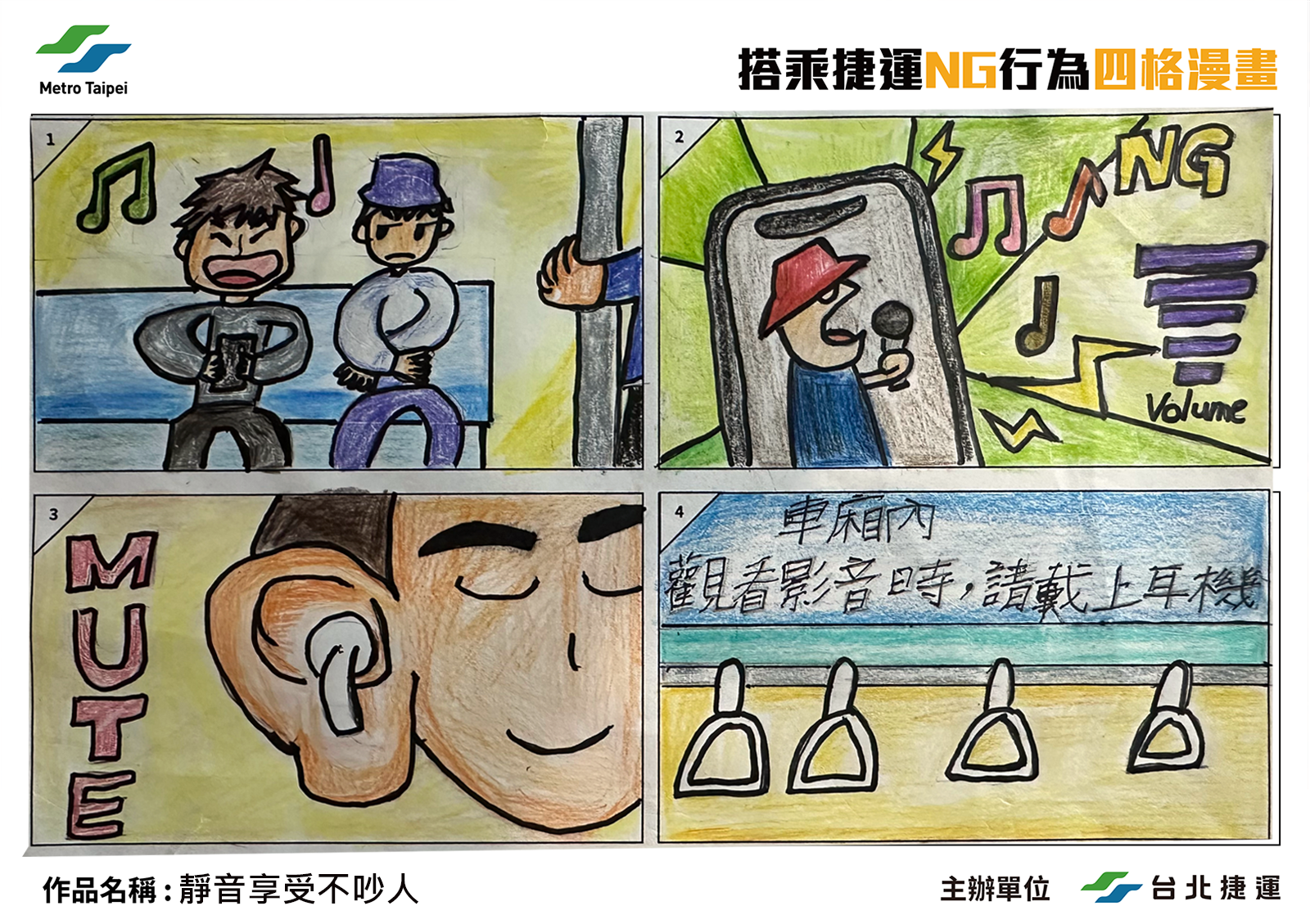 - 捷運裡人潮眾多,聲音要自我管理,不影響別人,自己享受自己的音樂..